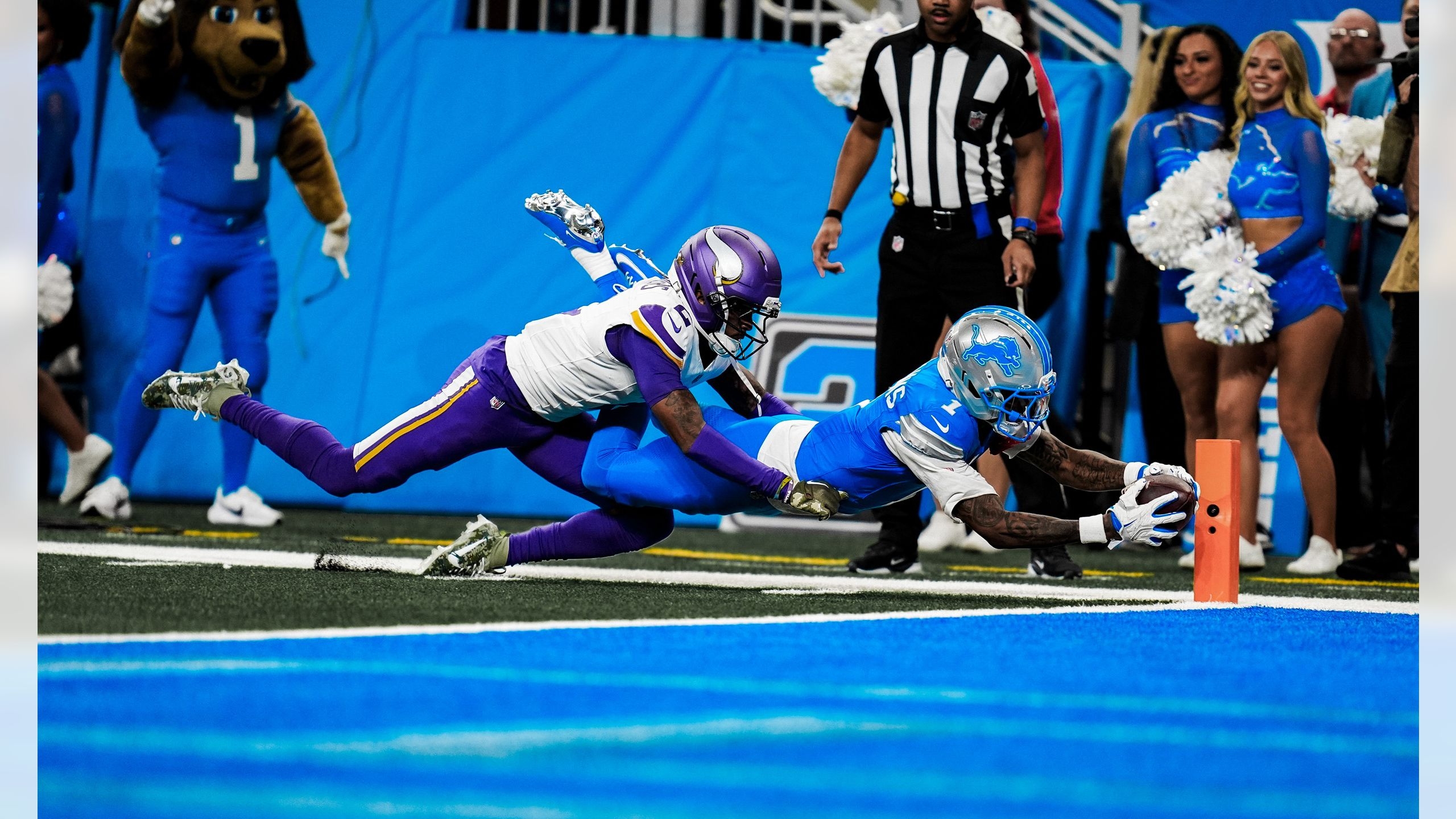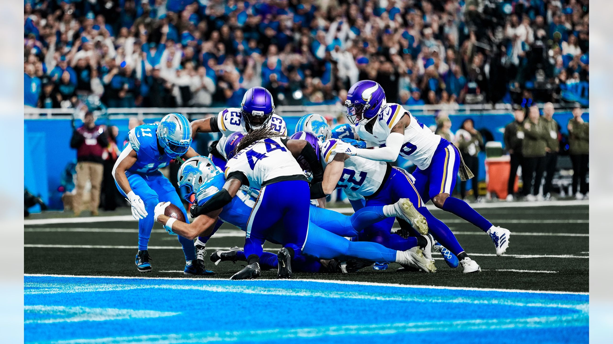 Дебютный драйв игры с гордостью носил имя Сэма Лапорты. Тайтэнд «Детройта» начал этот драйв, его же и завершил. Уже ставший современной классикой розыгрыш четвертой попытки от Дэна Кэмпбелла принес свои плоды. Лапорта принял передачу от Гоффа в двадцати ярдах от зачетки «Вайкингс», протащил мяч и умудрился устоять на ногах, будучи захваченным аж тремя защитниками «Миннесоты». Продолжая переть вперед, тайтэнд «Лайонс» дождался подоспевших партнеров, силами которых этот клубок из разномастных тел был успешно доставлен в зачетку. «Детройт» впереди, Лапорта наглядно показал, что масса-таки решает.