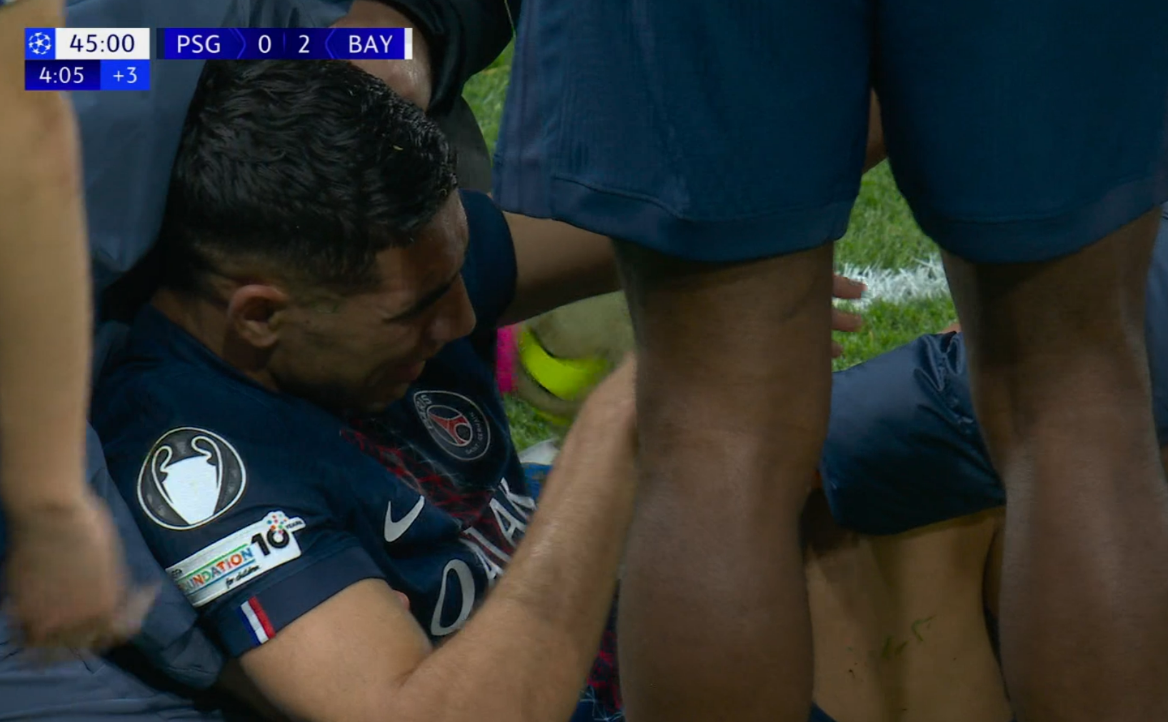 Автора дубля в первом тайме удалили, а марокканца с трудом привели в чувство – он плакал от сильной боли. Хакими пришлось менять на Санни Меюлю.