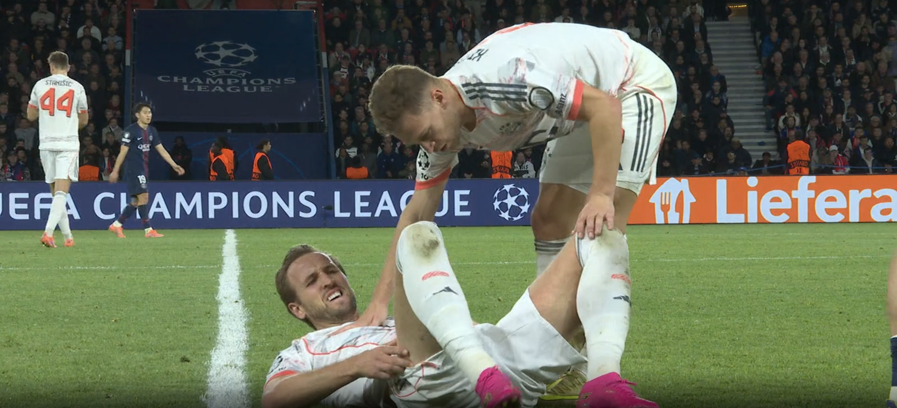 Йозуа Киммих после того, как Кейн на 82-й минуте от усталости лег на газон, показал Харри, чтоб не поднимался слишком быстро.