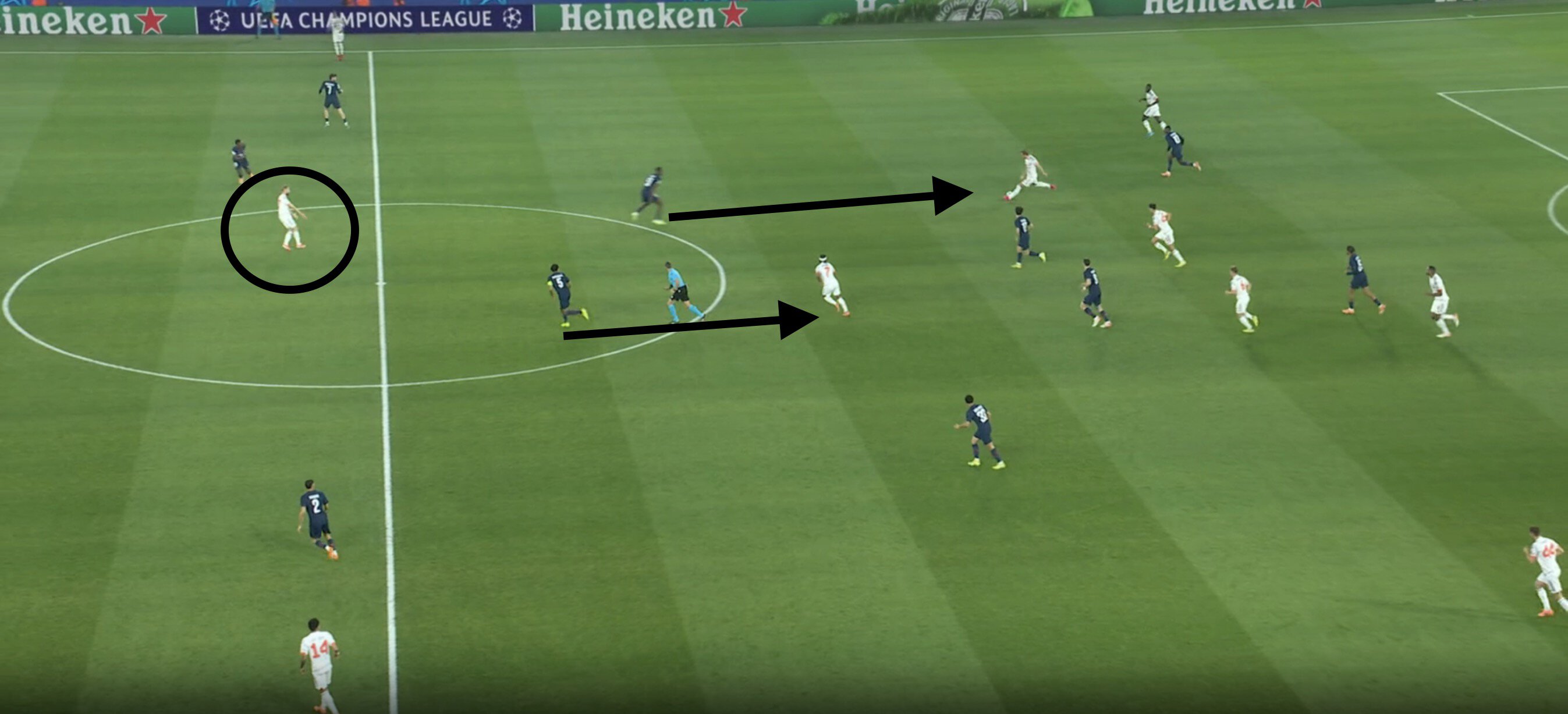 Именно Невешу зачастую шли фланговые доставки. Пока Рамуш стягивал внимание, Невеш атаковал. Именно он забил единственный мяч «ПСЖ», замкнув на дальней подачу Ли (Лаймер выключился, Рамуш отвлек Упамекано). Еще Невеш опасно бил головой с подачи Ли, отскочив от Та. Несмотря на низкие 174 см роста, Невеш регулярно забивает после навесов. Правда, обычно на стандартах, где теряется вдали от эпицентра событий, а затем открывается у дальней штанги. «Баварии» тоже забил в подобном стиле, но не на стандарте.