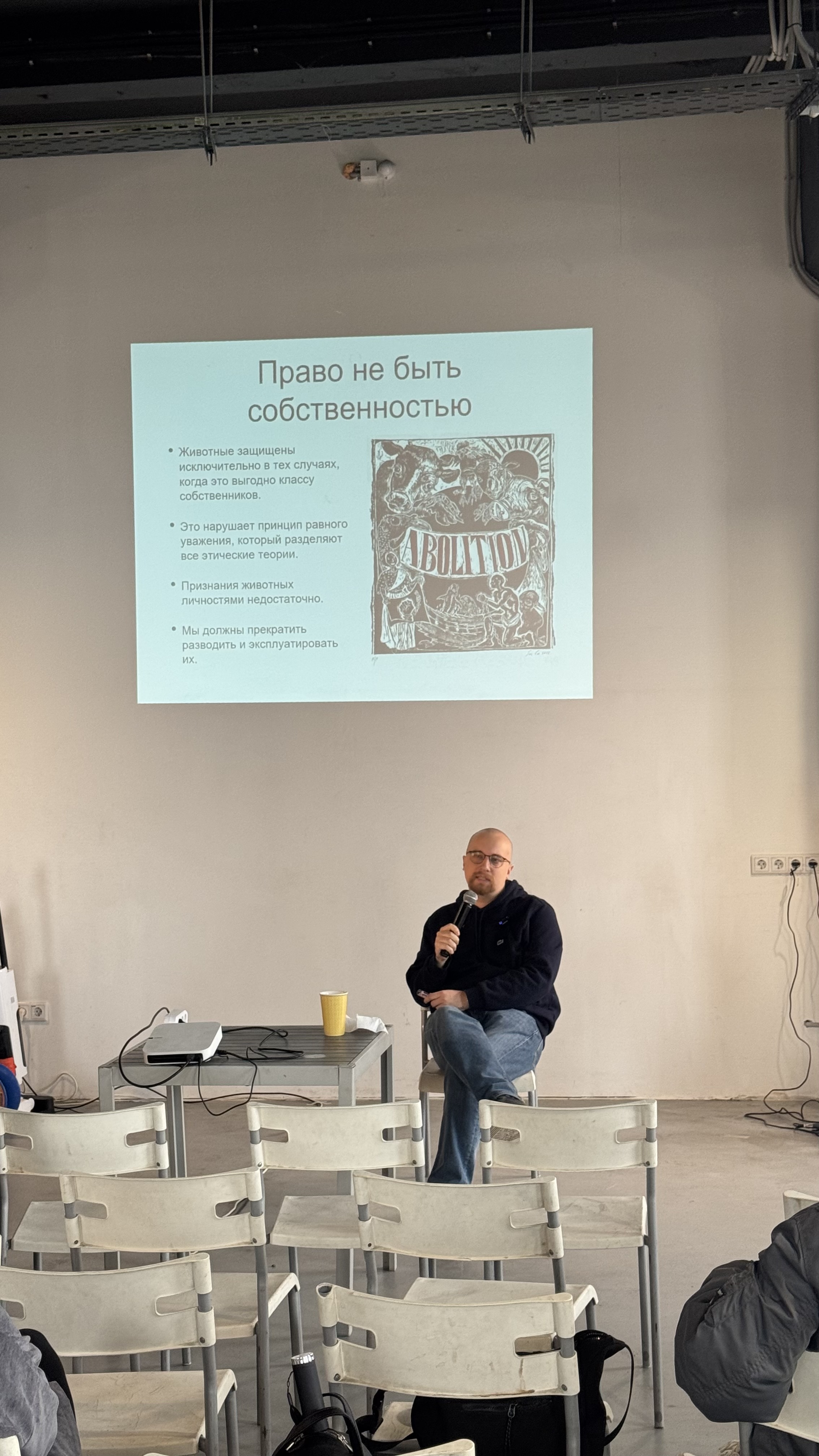 Денис Шаманов, соавтор проектов «Школа Прав Животных» и «Веганим вместе» выступает за аболиционистский подход к правам животных