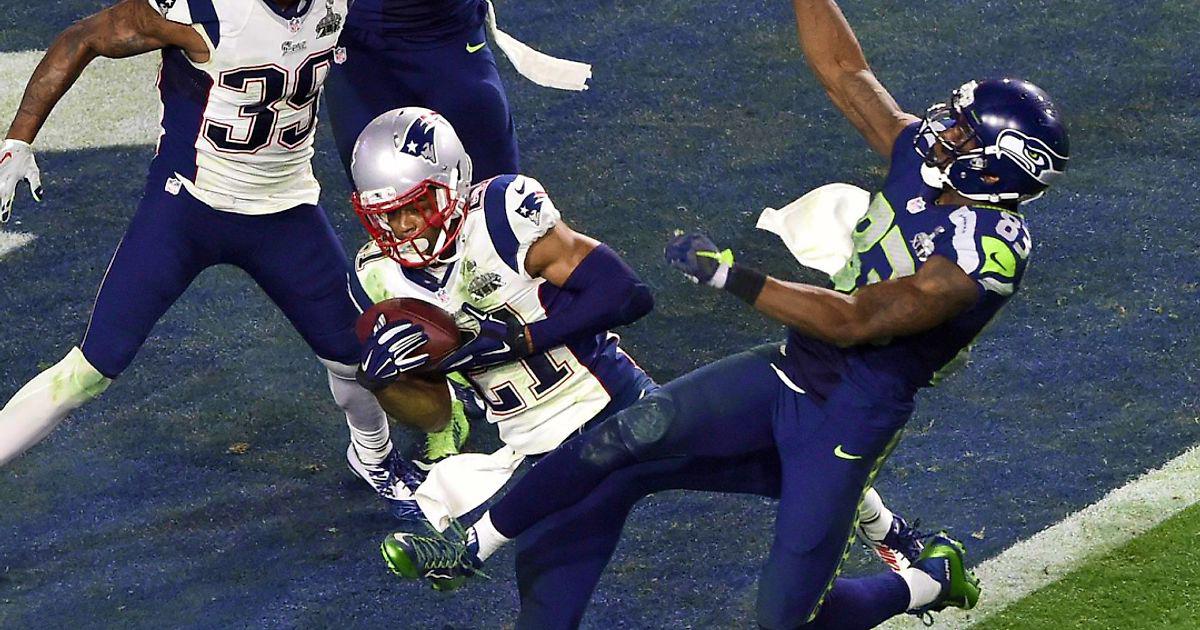 Локкетт на мгновение кажется открытым. Возможно. Но прежде чем мяч вылетит из руки Уилсона, новичок «Пэтриотс» Малкольм Батлер ворвется, и его левое плечо врежется в правое плечо Локетта, когда прилетит мяч. Локетт продолжает падать. Батлер перехватывает пас. «Сихокс» проигрывают. Каждый раз, когда случается этот розыгрыш, «Сихокс» проигрывают.