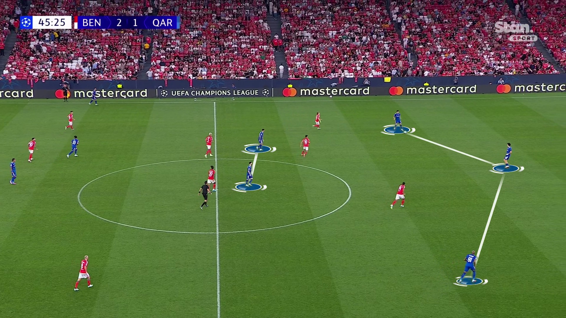 В таком режиме команда действует крайне впечатляюще. Например, второй гол в ворота «Бенфики» – позиционная атака, в которой «Карабах» терпеливо разыгрывал 33 секунды, проверил оба фланга, дождался разрыва в зоне правого защитника и элегантно вскрыл это пространство: