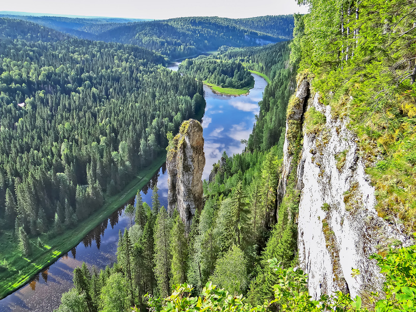 Скалы-великаны над бурной Усьвой: 70-метровый Чертов Палец — испытание для смелых фотографов и напоминание о древнем Пермском море, на дне которого мы сейчас стоим. Здесь можно найти древние окаменелости кораллов и морских моллюсков. Миллионы лет назад здесь простиралось огромное Пермское море.