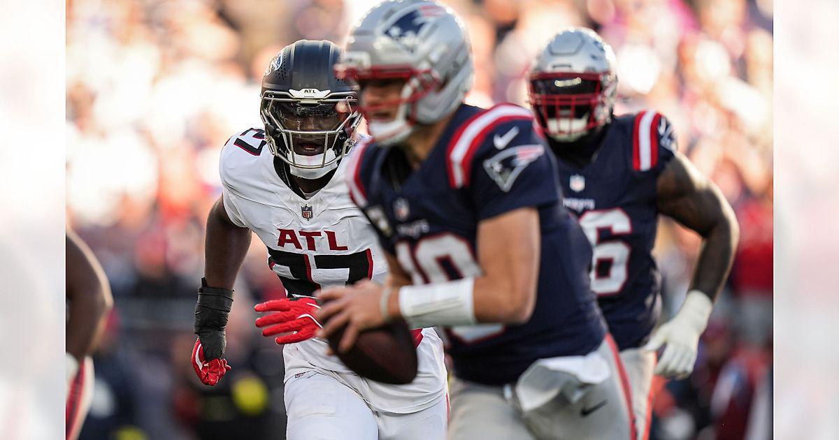 Кайл Питтс и Дрейк Лондон были рабочими лошадками для своего квотербека. Усилиями своих принимающих Майкл Пеникс тянул «Фэлконс» вперед. Дрейк Лондон сравнял счет в матче. Звездный принимающий «Атланты» по своему обыкновению был главной угрозой для защиты хозяев «Фоксборо». Ценности ресиверу прибавляло и то, что выносная игра в лице Бижана Робинсона многого «Атланте» не приносила. Оборона «Нью-Ингленда» обрубала чаяния раннинбека на успешную игру в корне.