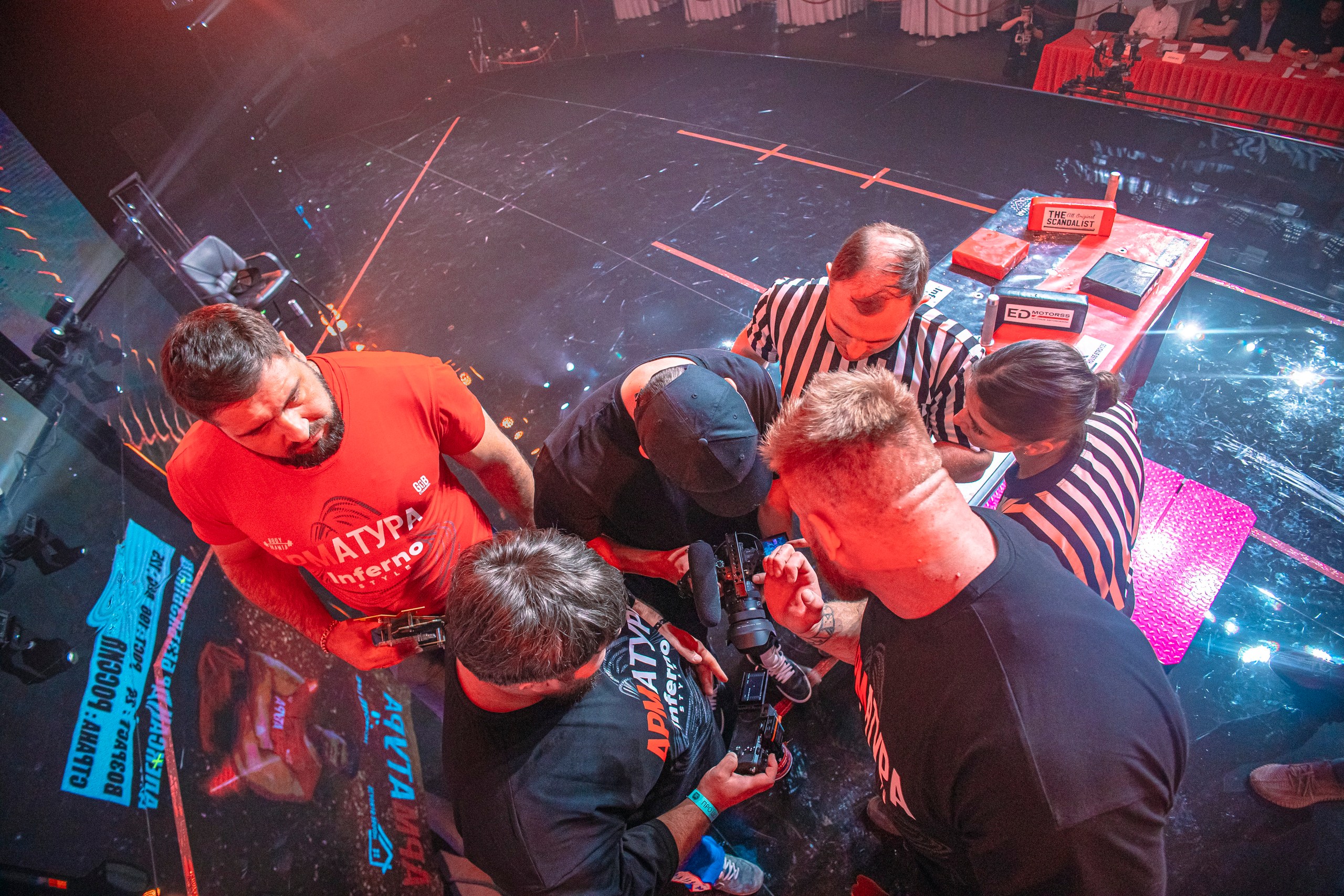 Самым звёздным «закулисным» поединком стала импровизированная схватка между Василием Камоцким и Хафтором Бьёрнссоном на «АРМАТУРЕ‑8». Изначально Хафтора попросили просто подняться на сцену, чтобы сделать фото за столом со звездой POWER SLAP. Но вы же понимаете: раз ты встал к столу, надо же понять, кто тут самый самый!