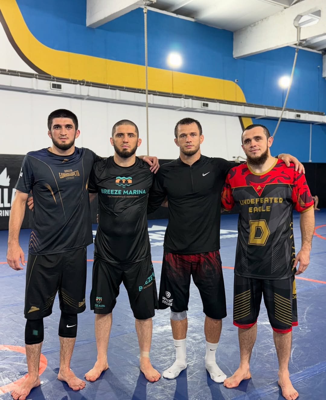 Легко заметить, что Махачев окружил себя спарринг-партнерами как раз из полусреднего веса: Мухаммад Берхамов (16-3 в ММА, ростом точно как Маддалена) и Абубакар Нурмагомедов (17-4, 180 см). И высокими представителями легкого дивизиона: Амру Магомедов и Усман Нурмагомедов – оба не ниже 180 см.