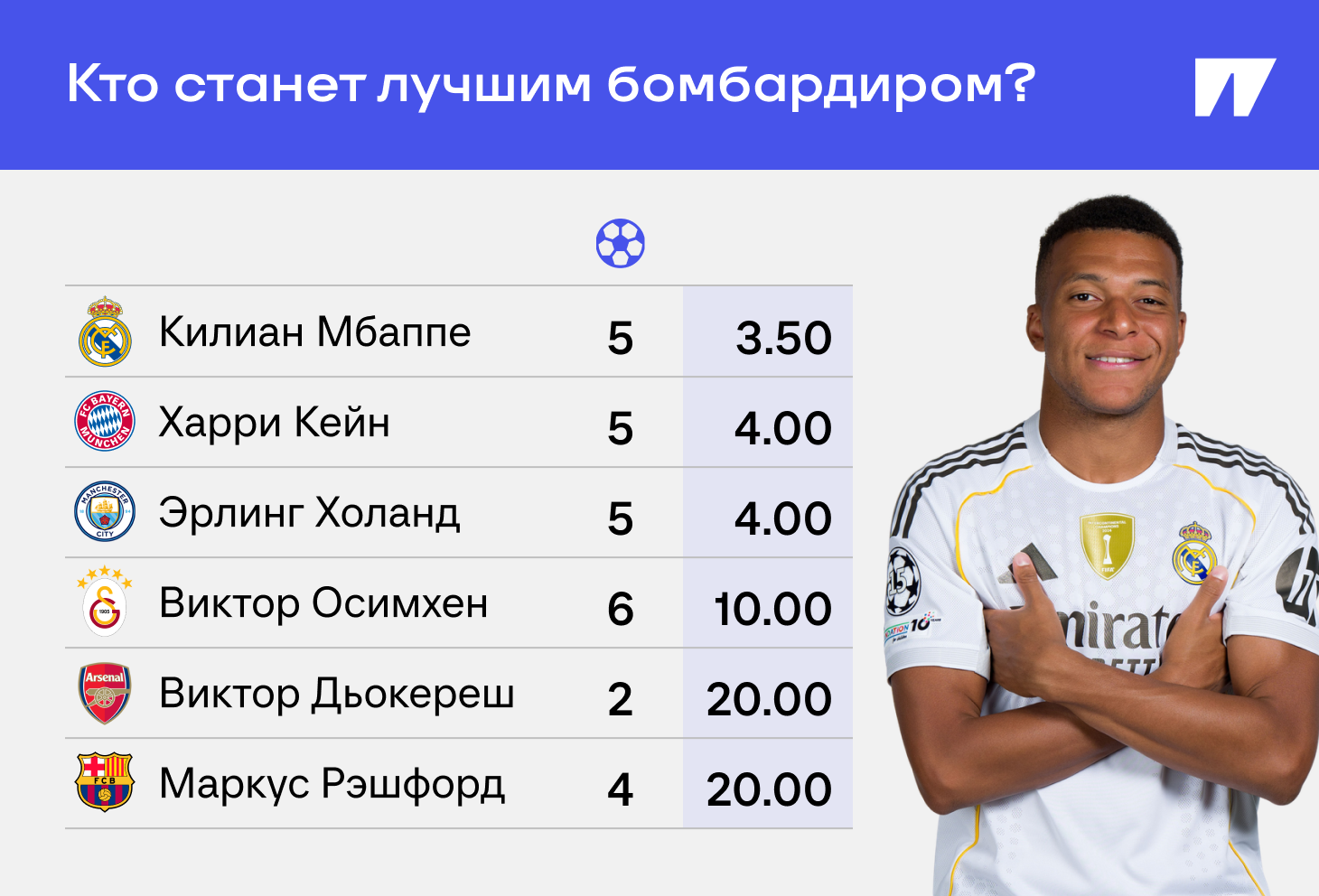 У бомбардиров тоже весело. Виктор Осимхен сделал хет-трик в матче «Галатасарая» с «Аяксом» (3:0) и единолично возглавил гонку. При этом он не входит даже в топ-3 фаворитов.