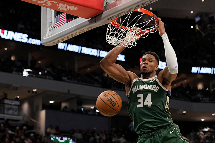 У 211-сантиметрового Янниса есть одна черта, которая совсем не вяжется с представлением об игроке его габаритов. Он входит в число лидеров НБА по атакам с ведения. Например, он атакует 3,5 раза за игру после 7+ ударов мячом в пол, по этому показателю грек выше Тайлера Хирро, Тайриза Халибертона и Джордана Пула. А по числу атак с 3-6 ударами в пол Яннис (5,5) сопоставим с Лукой Дончичем (6,0).