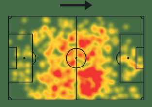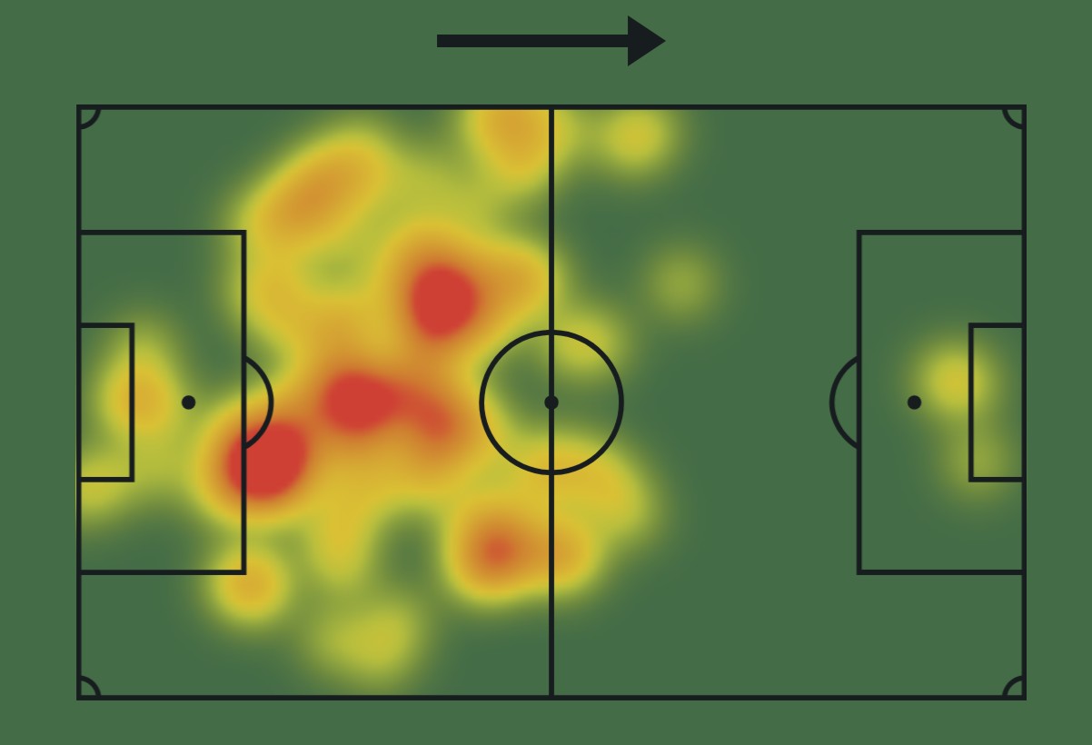 На тепловой карте 1 видно, что Гасперини давал ему атакующие указания, привязывая его к правому флангу.