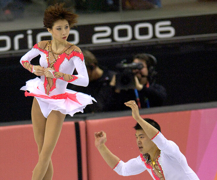 В Солт-Лейк-Сити-2002 китайцы Сюэ и Хунбо зашли на четверной выброс – впервые в истории Олимпийских игр. Элемент был докручен – высокий, пролетный и чистый, но на выезде партнерша упала.