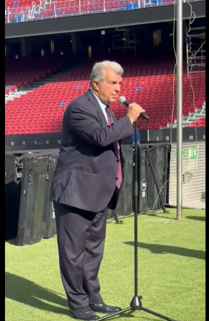 Жоан Лапорта появился на стадионе одним из первых и почти сразу направился к микрофону, чтобы дать интервью и сказать несколько слов.