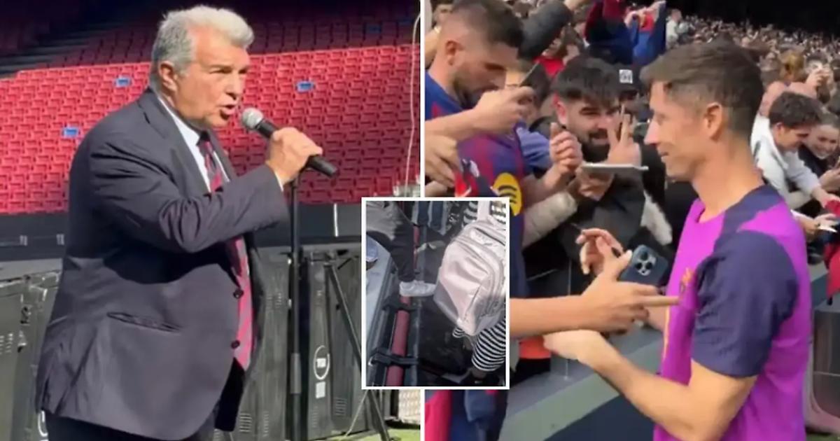 Лапорта спел гимн «Барсы», а фанаты успели сломать стулья на трибунах: так прошла открытая тренировка на новом «Камп Ноу» 🔥