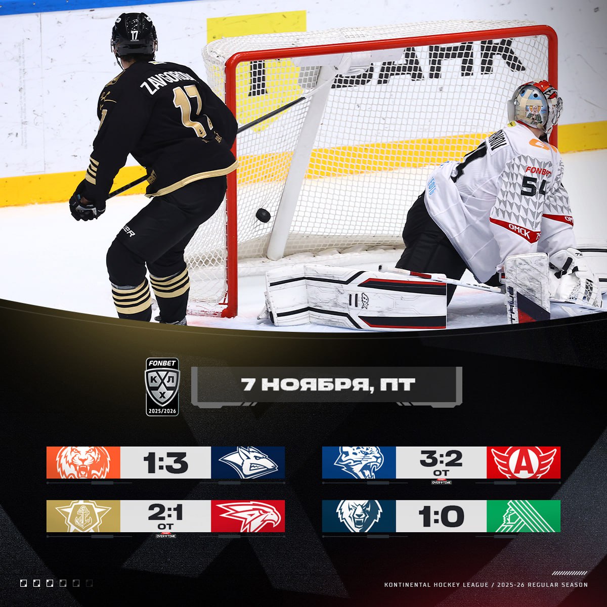 Итоги вчерашнего дня в КХЛ
