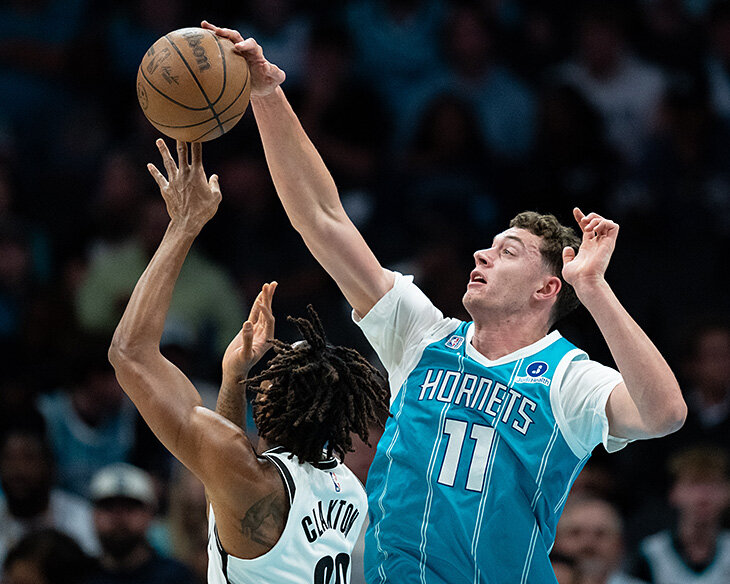 Больше 70% со штрафных, 115 трёхочковых за два последних года в студентах, 17 из 23 из-за дуги на драфт-комбайне. Дело не в отсутствии навыка, а в строгих ограничениях тренерского штаба. «Шарлотт», похоже, нравится выращивать атлетичных рим-раннеров и обменивать их в другие клубы.