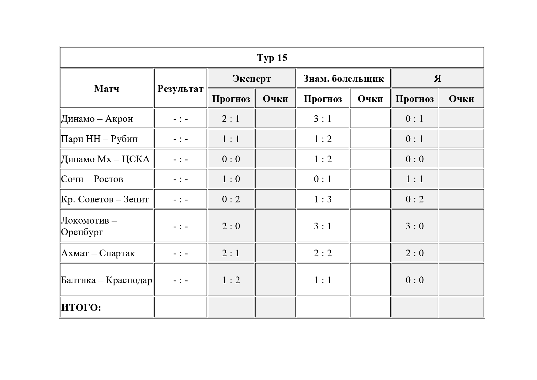 Противостояние!!! Я или Спорт-Экспресс? Тур 15.