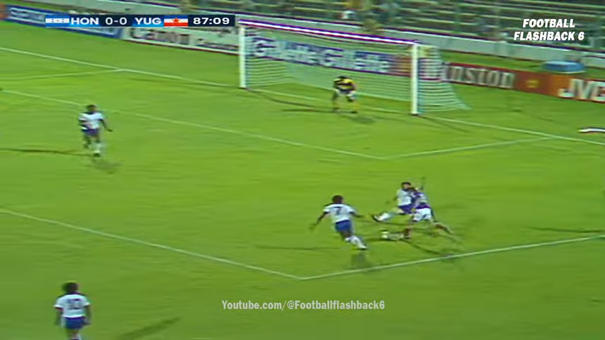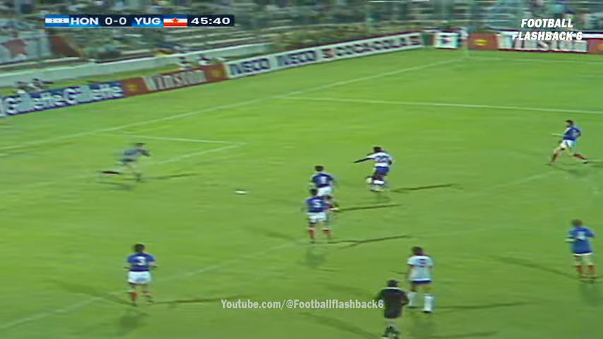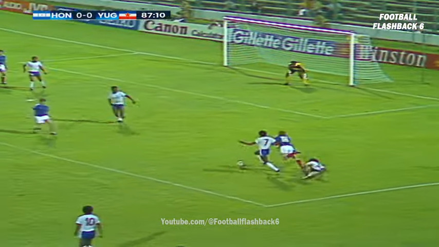 24 июня 1982, Гондурас – Югославия. На 46-й мин Жильберто (№20, в белой футболке) имел момент, подобно которому югославы не могли создать за весь матч. Но, как скажет позже Арзу, «он не был бомбардиром. Он создавал отличные моменты, но не мог их завершить».