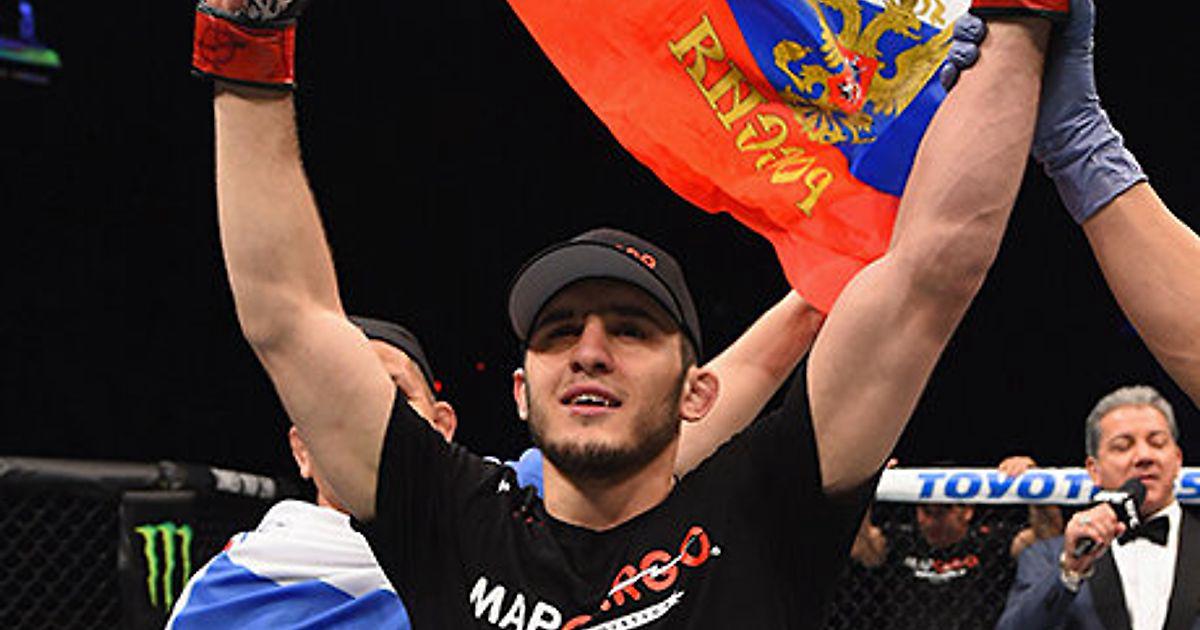 В мае-2015 Ислам Махачев дебютировал в UFC – победил американца Лео Кунца на UFC 187 с поддержкой отца Хабиба. А после боя праздновал с российским флагом – в первый и последний раз.