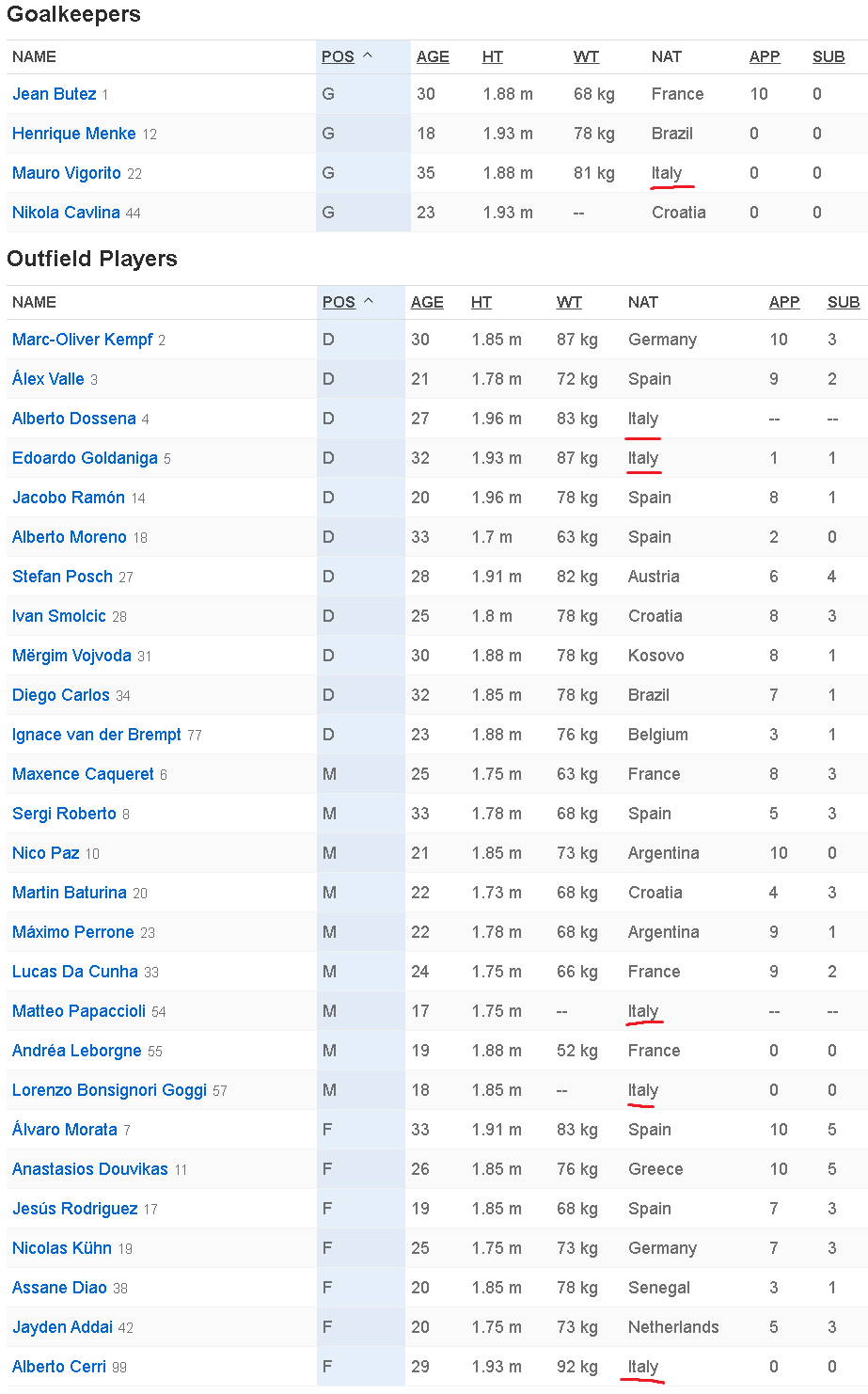 В заявке же лишь шесть итальянцев.