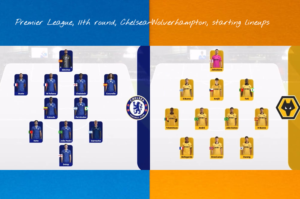 Завершал субботнюю программу 11-го тура матч «Челси» с «Вулверхэмптоном» (3-0). Игра проходила в одностороннем порядке: команда Марески пыталась вскрыть компактную структуру «Вулверхэмптона» на протяжении долгого отрезка.