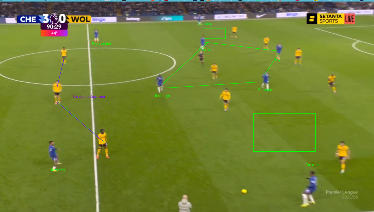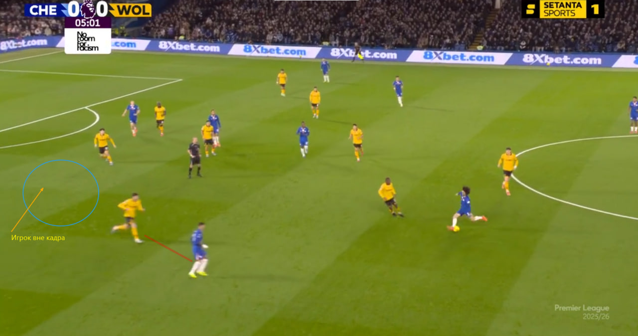 Также стоит подчеркнуть то, как прессинговало данное сочетание: при взаимозаменяемости и грамотной работе с таймингами в силу обученности, было очень сложно выходить низом: в последний отрезок (после 80+ минуты) «Вулверхэмптон» терял мяч 3-4 раза только на фланге при прессинге «Челси», что показатель универсальности.