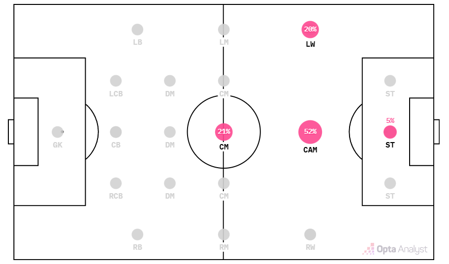 В нынешнем сезоне Фермин выходит не только на позиции десятого номера, а также слева в атаке. На этой позиции он играл и раньше, так что травма Рафиньи стала не поводом освоить новую позицию, а дополнительным пропуском в стартовый состав.