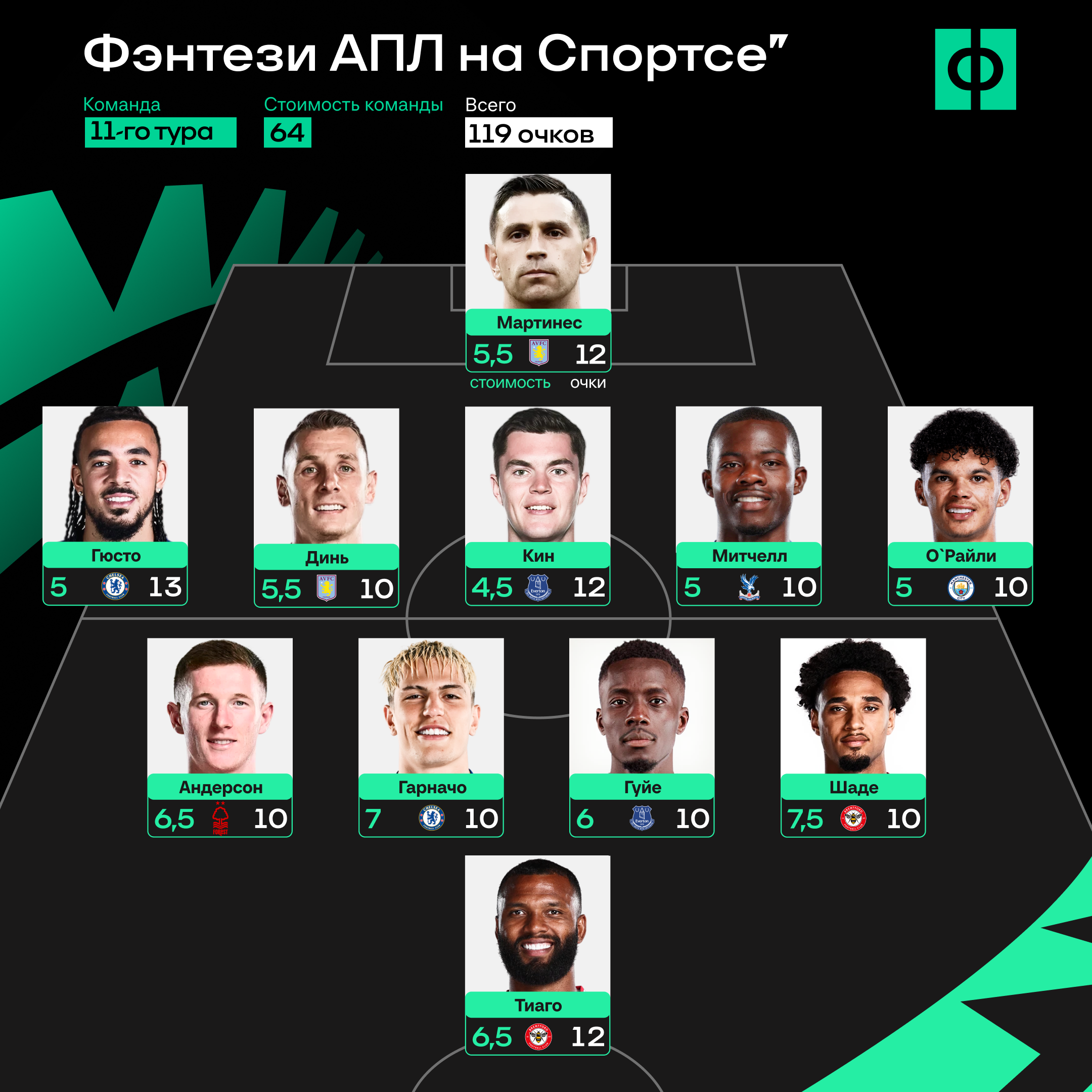 Это самые эффективные игроки 11-го тура в Фэнтези АПЛ на Спортсе’‘.