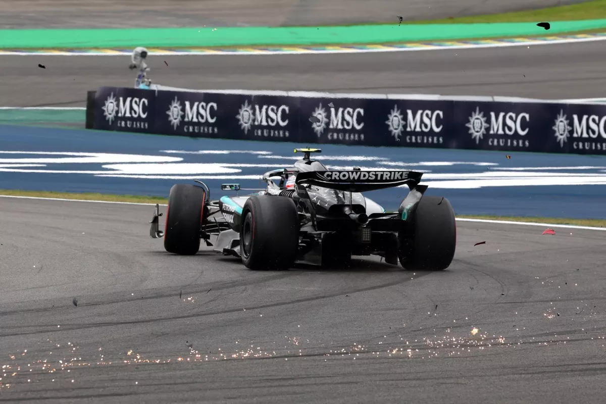 Этот контакт запустил цепную реакцию: потерявший управление болид Антонелли правым задним колесом задел левую переднюю подвеску болида Шарля Леклера, что немедленно привело к серьезным повреждениям и сходу гонщика «Феррари».