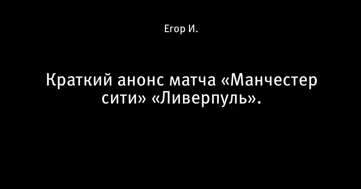 Краткий анонс матча «Манчестер сити» «Ливерпуль».