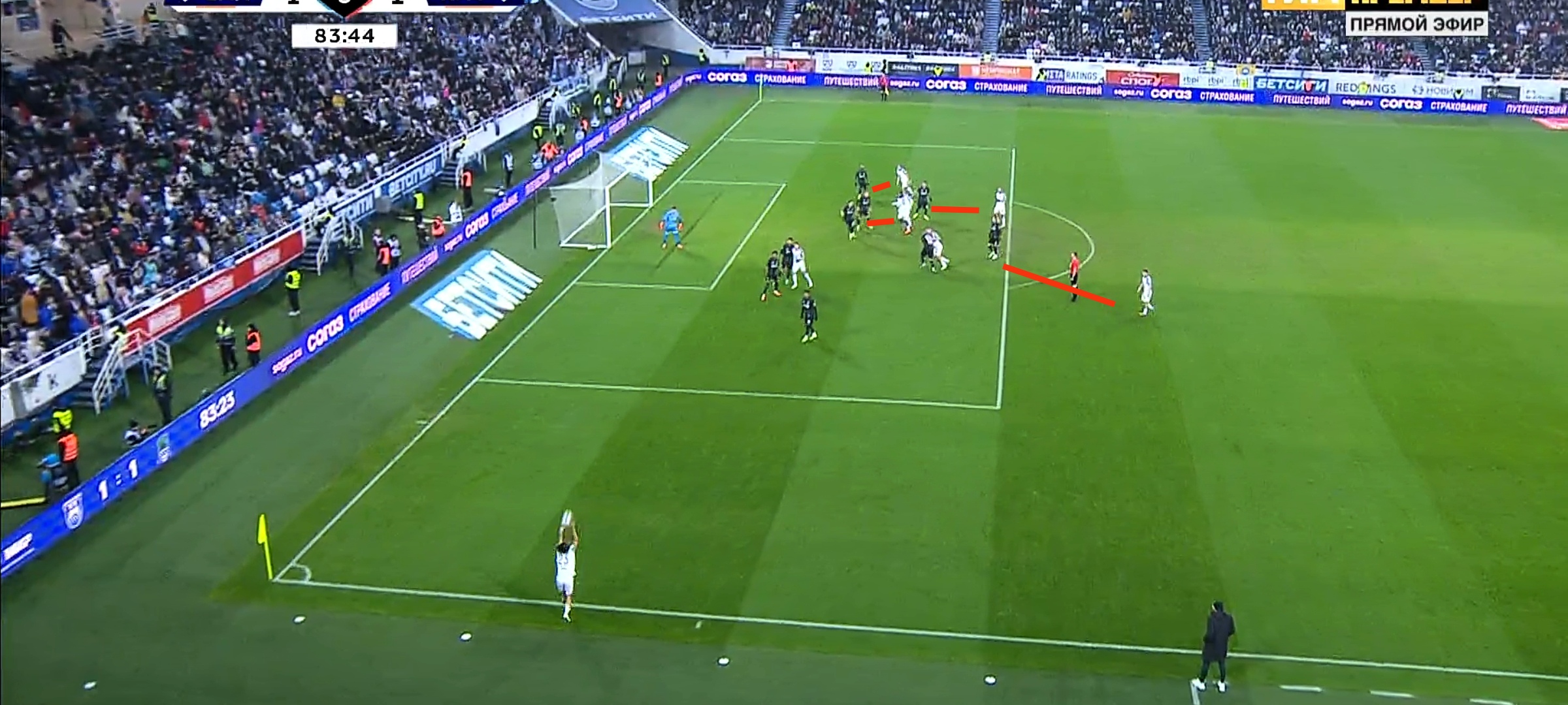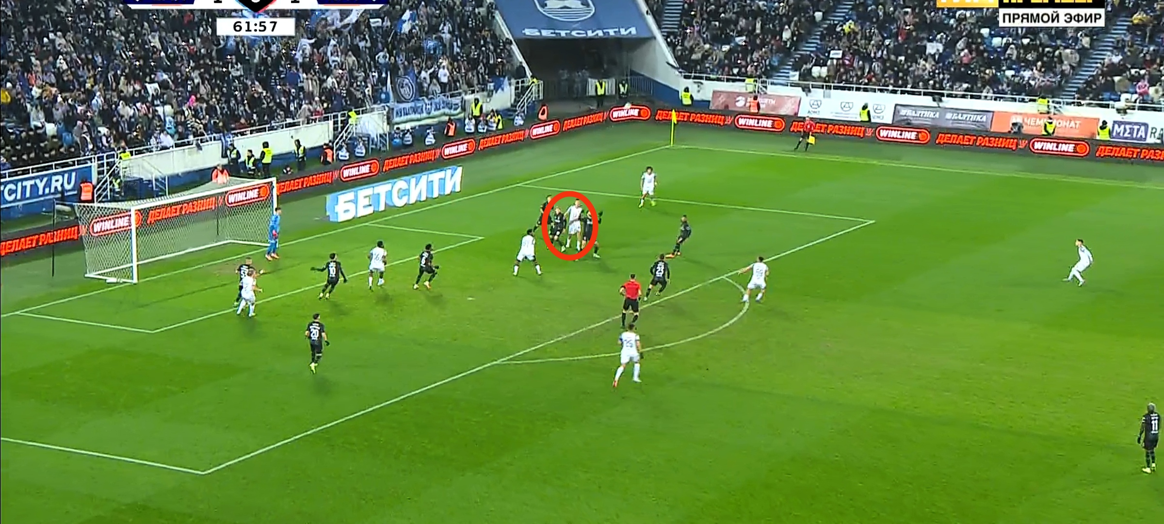 Два из трёх главных моментов калининградцев, в том числе голевой, пришли именно после аутов. Схема простая, но максимально рабочая: 6-7 игроков в штрафной (по два игрока на подборе, ближней и дальней штангах+эпизодически дополнительный игрок в центре штрафной. Кстати, на предшествующем удару Беликова в штангу штрафном были соблюдены всё те же позиции), подача на ближнюю и скидка на дальнюю/подбор.