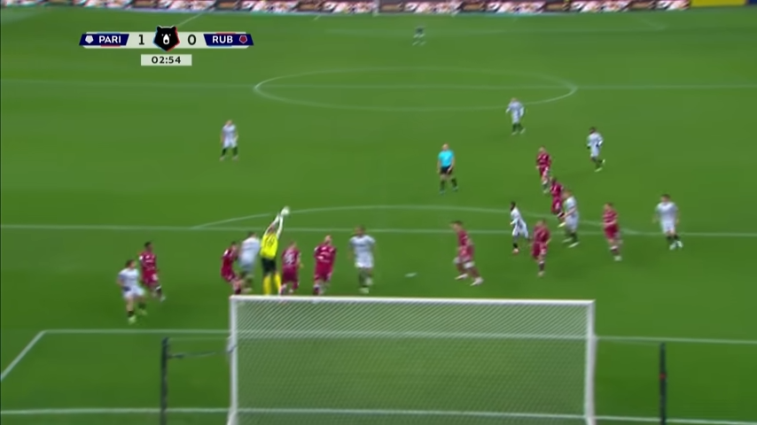 Но Федоров по вызову ВАР Галимова пошел смотреть на определение пассивного/активного «вне игры» у Карича (на скрине - выпрыгивает рядом со Ставером). Поскольку Карич мяча вообще не касался, то просто зафиксировать «вне игры» ВАР не мог.То, что нижегородец не коснулся в прыжке вратаря - очевидно, как и то, что вратарь смотрел совсем в другую сторону и соперника вообще не видел. Однако Федоров решил, что гол надо отменить. Пикантности эпизоду добавляет игра прошлого сезона между этими же командами, выигранная Рубином за счет гола Зотова, бегавшего за спиной у игроков Пари НН (указан стрелкой) при кроссе со стандарта