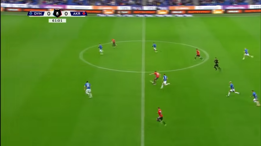 Сам же последний тур первого круга начался игрой Динамо Мск - Акрон, который очередной раз показал и неспособность Карпина наладить более-менее надежную игру в обороне, и проблемы с организацией атаки против команд, играющих в «низком блоке». Но по другому и быть не могло, даром что основная схема у команд одинаковая - гибридные 5-4-1 в обороне. За первый тайм Акрон не ударил вообще ни разу по воротам, а Динамо имело какой-никакой шанс только на 42 минуте, когда Гладышев не попал в ворота ударом в касание. Второй тайм начался так же без серьезных моментов, но к 60 минуте главный «столп» защиты Карпина Осипенко выбился из сил совсем, и не накрыл Хоснова, игравшего «роль Д. Глебова» ( ЦЗ при обороне, опорник - при атаке). Эта «эпичная» игра ЦЗ сборной достойна детального разбора, начиная с отбора Хетагом мяча