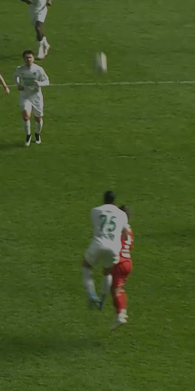 Недалеко от технической зоны Ахмата после борьбы Ву и Мелкадзе мяч улетает в аут от ноги Георгия.