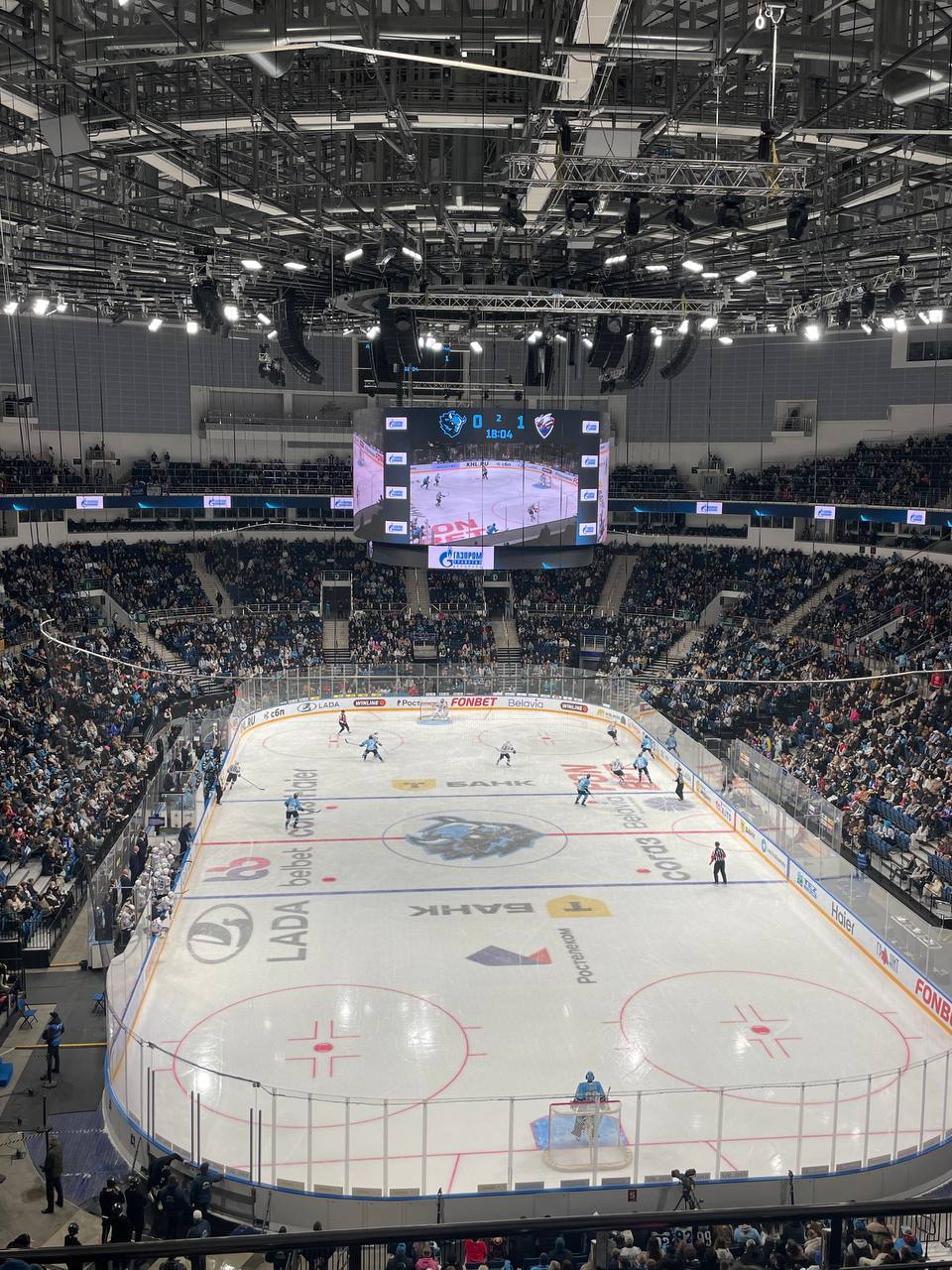 Отдельно выделю в целом атмосферу на арене. Если честно, не припомню такого нигде. Вся арена поддерживает команду, ну или как то проявляет активность. Огромный процент людей в Джерси. Моментами чаша взрывалась прям в едином порыве, не без подсказки ведущего конечно, но все же. Свист зрителей направленный на арбитра стоял в ушах еще минут 20 после матча. Сравнивая атмосферу на футболе и хоккее. С огромным перевесом лучше было на хоккее. Конечно, можно сказать, что футбол и хоккей начинался в одно время, но я мало сомневаюсь, что что то поменялось бы.