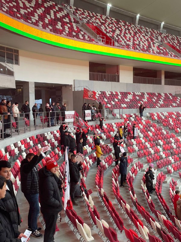 Поднялись наверх, сделали пару фотографий, зашли в фаншоп. Кстати, выбор хороший. Значки, шарфы, программки, форма вполне себе симпатичная за 103 рубля местных денег (в Российских рублях это ~2500). Купили себе чаю с хот догом и присели за столик. Футболисты выходят на поле, звучит гимн страны, солдаты срочники с радостными глазами поют его и видно, что кайфуют от нахождения на стадионе. Мы же прошлись вдоль трибуны, заценили два, если так можно назвать, фанатских сектора. Все мы прекрасно знаем, что фанаты не ходят здесь. Дальше, да простят меня отцы граундхоппинга, но мы посмотрели примерно 10 минут матча и отправились к основной цели нашей поездки.