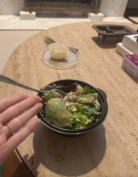 Как в ресторане сфоткан салат) Что уж говорить, половину ингредиентов просто положить забыли… Например, бекон. Но так нам рекламирует себя Америка) Как салат на фото) В реальности, как на моей фотографии, вся страна🤣🤣🤣🤣».