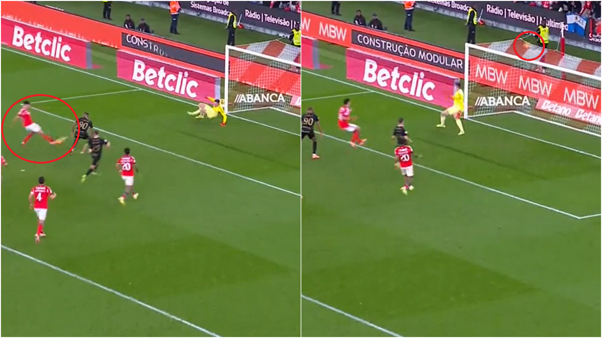 А центральный защитник «Бенфики» Томаш Араужу четко сыграл на добивании. Да, игрок «Бенфики»! Еще и зарядил в девятку.