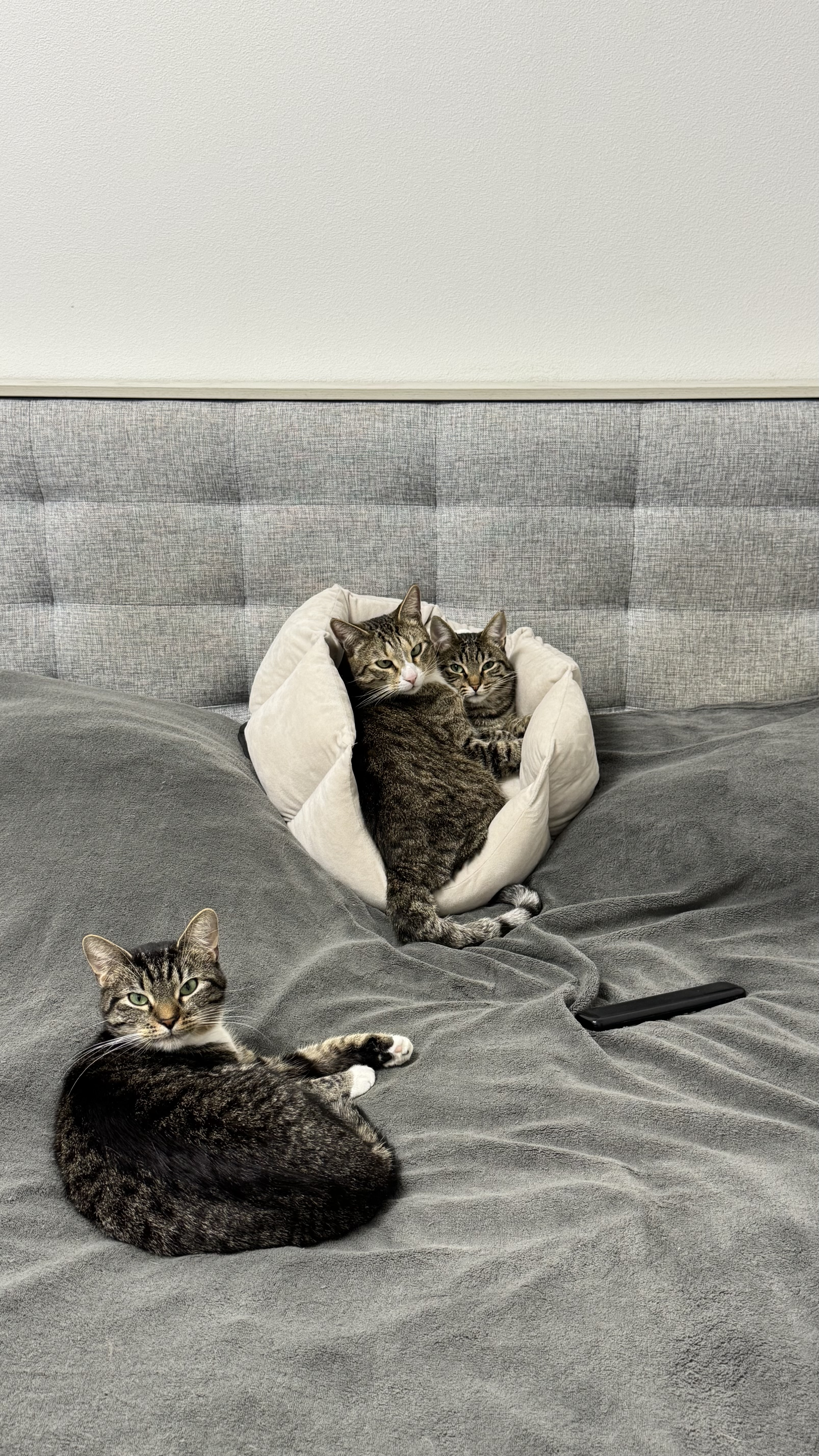 Оставляем их дома одних максимум на 3 суток. В принципе, занятость не позволяет больше времени выделить на отдых. У нас дома автокормушки две, с возможностью видеонаблюдения. Уделяем время играм, покупаем игрушки и вкусняшки. У животных есть свои места в квартире, куда мы не суемся, когда они там отдыхают. На окнах у нас москитные сетки во избежание трагических форс-мажоров.