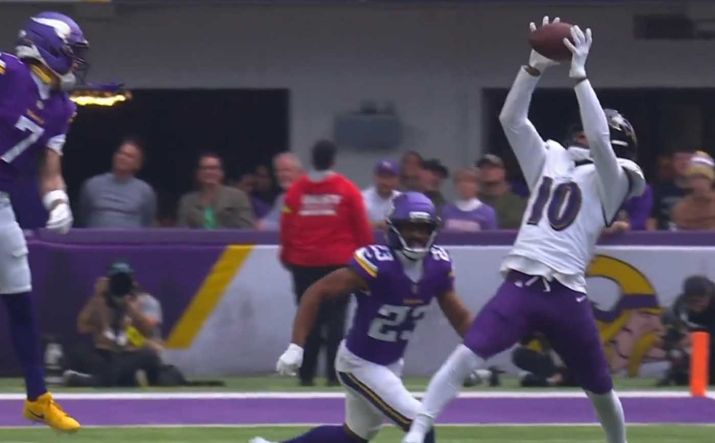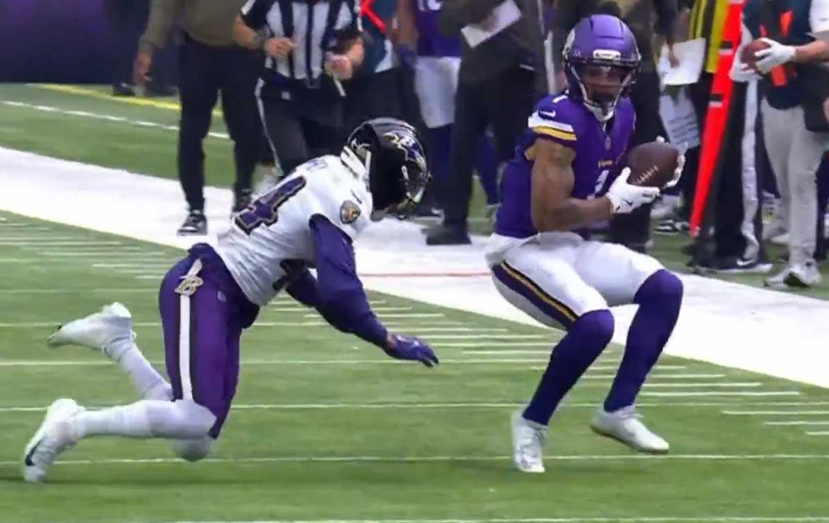 Закидуха на Джефферсона. Может и поймал бы, но после касания мяча Авузи его толкнул. Джефферсон выпросил флаг за пас-интерфиренс.