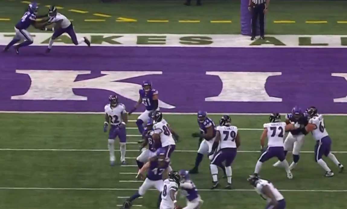 Двухочковая. Заготовка. Ламар резко на резко вбежавшего в зону Бэйтмана. 26-13. Худо-бедно, но в 2 раза больше очков набрали.