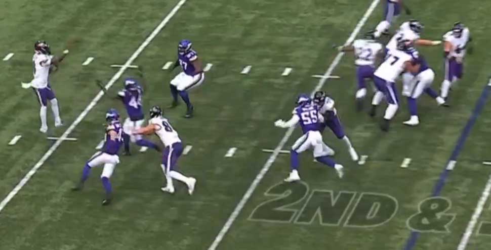Ламар по центру на Хопкинса, 9 ярдов.