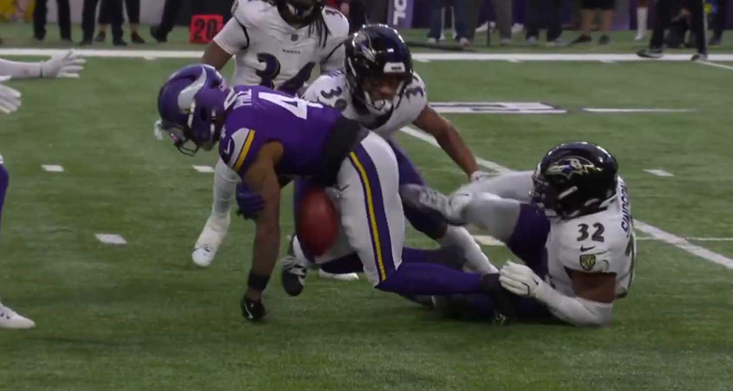 Гилман успевает затэклить. 1&гол, на 4 ярдах. Что-то Хамфри с Авузи, особенно Авузи, в лучших традициях защиты Балтимора этого года.
