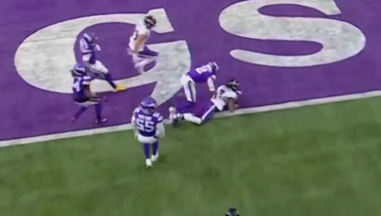 Викинги играют 2х-очковую, пас на Джефферсона, тот падает, судьи молчат. 27-19.
