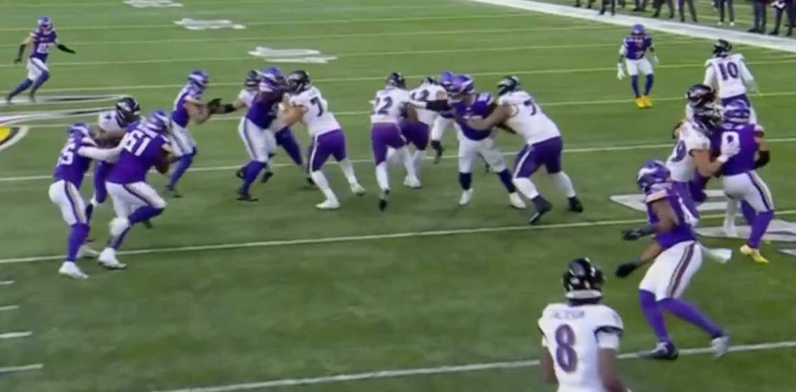 Итог. 27-19. Напряжённая, энергоёмкая игра, при этом могла закончиться спокойно, набери Ламар один дополнительный 1-ый даун. Да и последний тачдаун Викингов был лишним. Как бы то ни было, сыграли с желанием победить, и победили заслуженно. Миннесота – команда серьёзная, только что по делу обыграла Детройт. Защита доказала, что она может. Нападение не впечатлило, много 3&аутов, но набирало очки стабильно, и набрало достаточно. Флорес не подвёл, у Орра всё лучше, чем было, но тут дело в исполнителях, а не в схемах. Как должна играть защита с настоящим DC, посмотрите у Сиэттла.