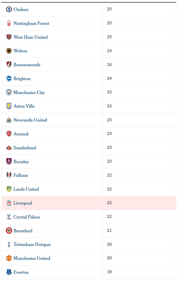 В то время как в Европе ситуация иная, поскольку «Ливерпуль» четыре раза забивал после стандартов, гол Нико Гонсалеса за «Манчестер Сити» стал шестым голом, который команда Слота пропустила со стандарта в лиге. Это один из худших показателей в истории топ-лиги.