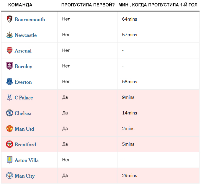 В этом сезоне, однако, все с точностью до наоборот. Поражения от «Кристал Пэлас», «Брентфорда», «Челси», «Манчестер Юнайтед» и «Манчестер Сити» произошли после того, как «Ливерпуль» пропустил первый гол.
