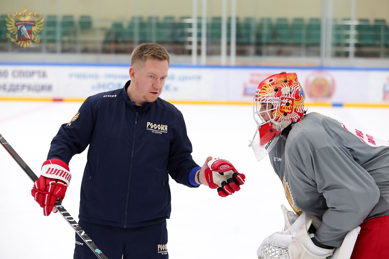 «Роман Александрович впервые испытал клюшку «KVS Confident» на занятиях во вратарской школе в конце сентября сего года, после чего стал использовать ее на постоянной основе, в совокупности с изолентой и шайбами нашей компании. А ведь тренер вратарей выполняет клюшкой порядка 500 бросков за тренировку. В сборной Роман не изменяет себе, пользуясь продукцией KVS», - сказано в социальных сетях нового бренда.