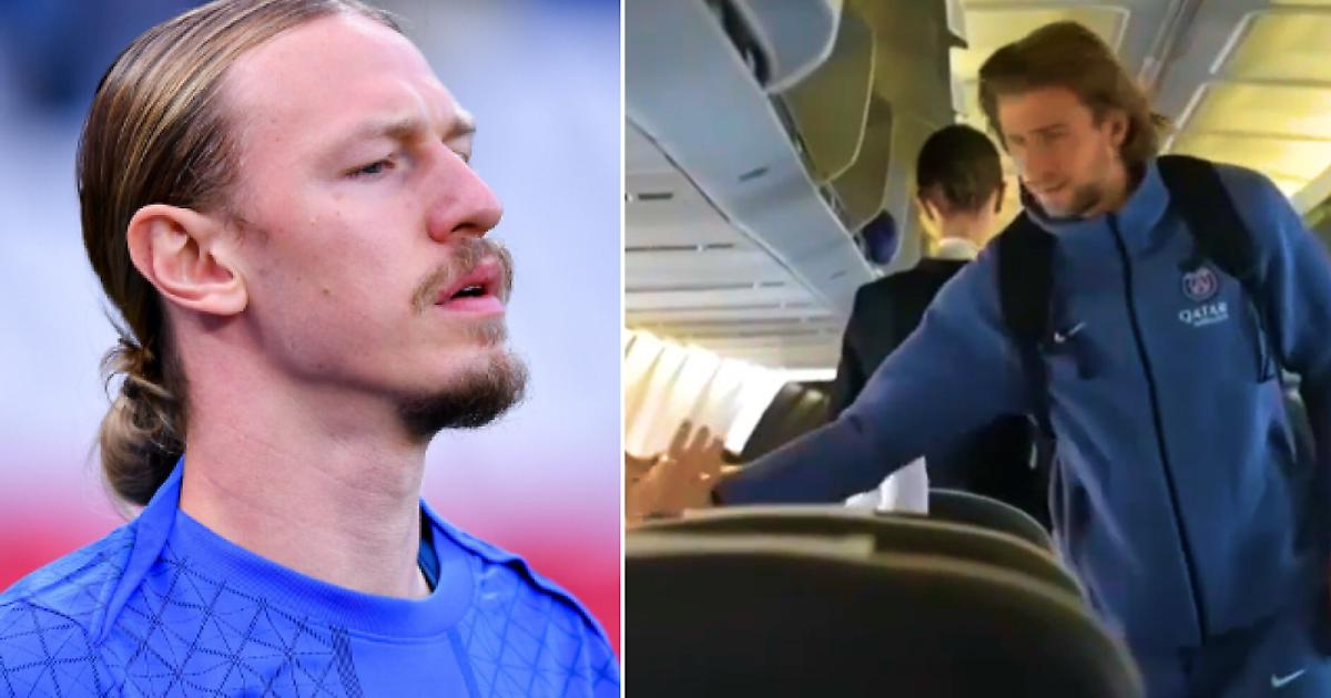 В сети появилось видео, где голкипер Матвей Сафонов и защитник Илья Забарный — одноклубники по «ПСЖ» — жмут друг другу руки в самолете. Фанаты быстро опознали россиянина по кольцам на руке, а украинец был виден в кадре.