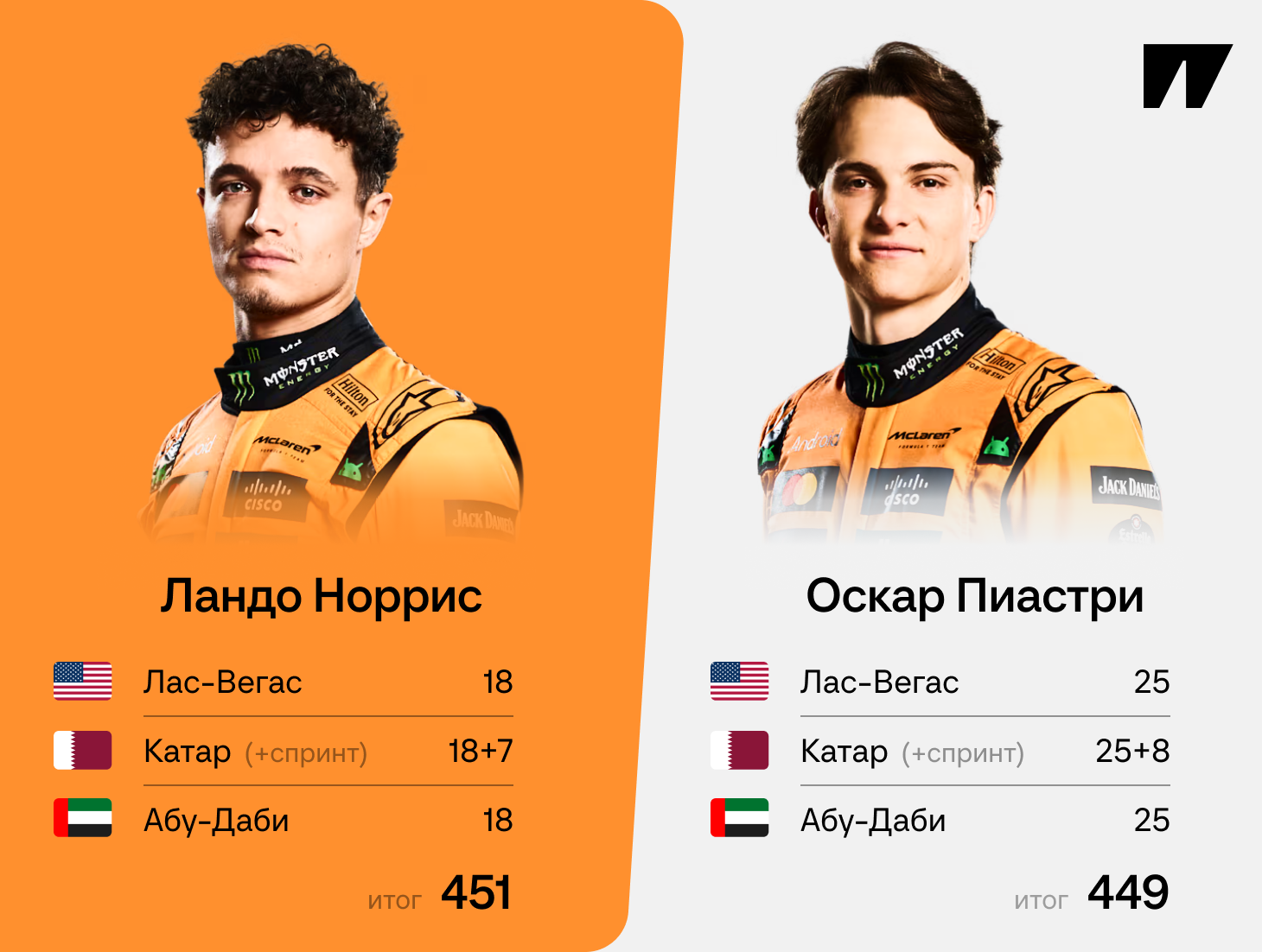 Норрис теперь точно чемпион «Ф-1»? Вот все сценарии шансов Ферстаппена и Пиастри