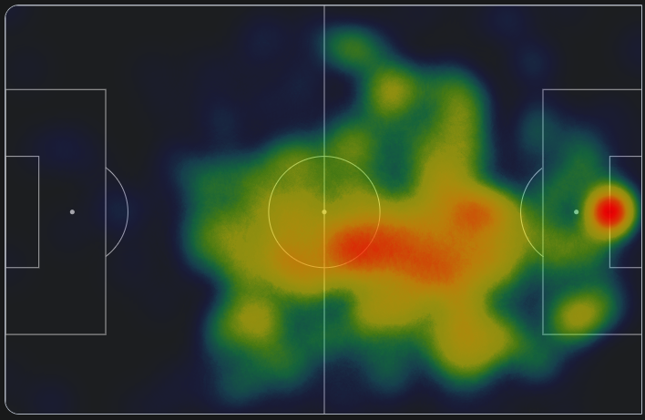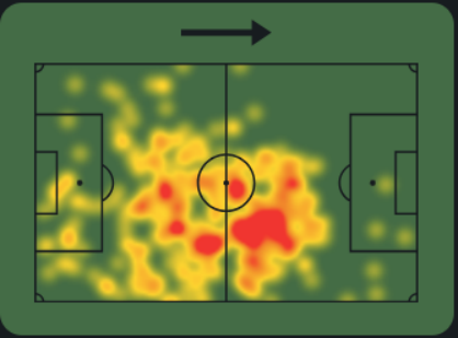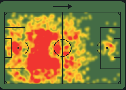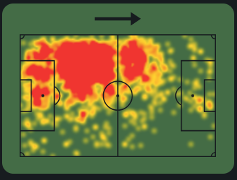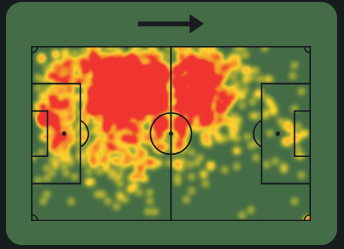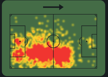-Основная зона влияния Нико сосредоточена в центре полузащиты, что свидетельствует о его роли плеймейкера. Это говорит о том, что он играет ключевую роль в организации переходов между зонами и сохранении владения мячом.